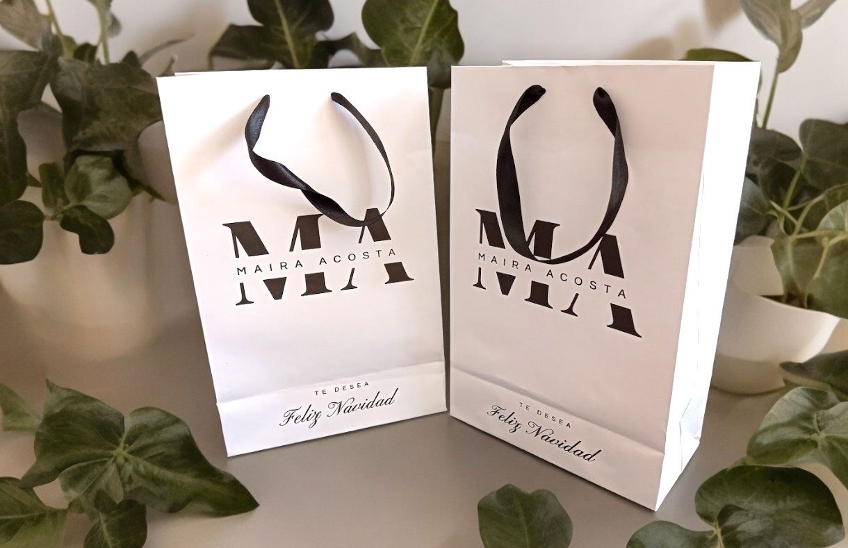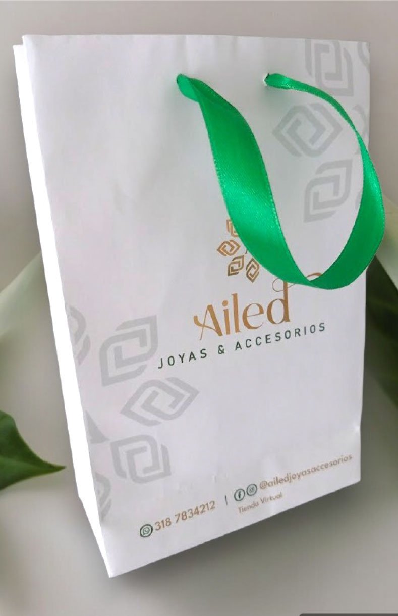 • Fabricación en material de alta calidad:  Papel blanco tono mate, gramaje 150, asas de gran resistencia en cinta satín, cordón y cabuya, esta bolsa asegura la protección y presentación de tus productos.