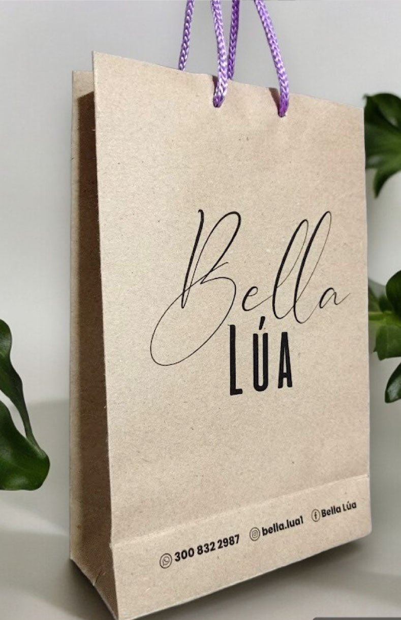 • Fabricación en material de alta calidad:  Papel kraft, tono mate, gramaje 120, asas de gran resistencia en cinta satín, cordón, cabuya y manija de papel, esta bolsa asegura la protección y presentación de tus productos.