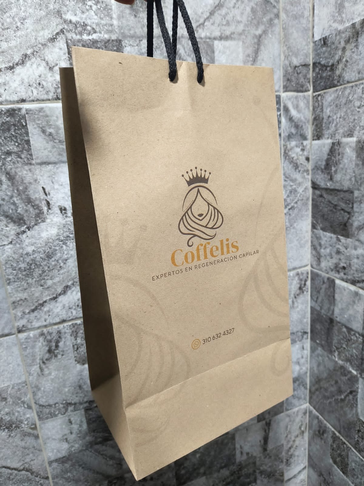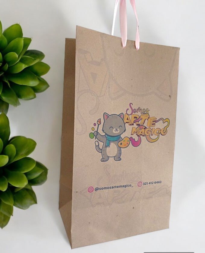 • Fabricación en material de alta calidad:  Papel kraft, tono mate, gramaje 120, asas de gran resistencia en cinta satín, cordón, cabuya y manija de papel, esta bolsa asegura la protección y presentación de tus productos.